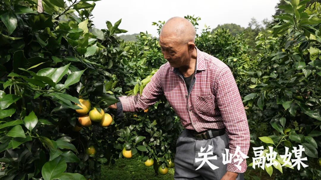 眼下正是果冻橙成熟前的关键管护期,果农陈富学正穿梭在林间,仔细查看果实的成熟度,不时用手轻捏果实感受硬度,记录情况。