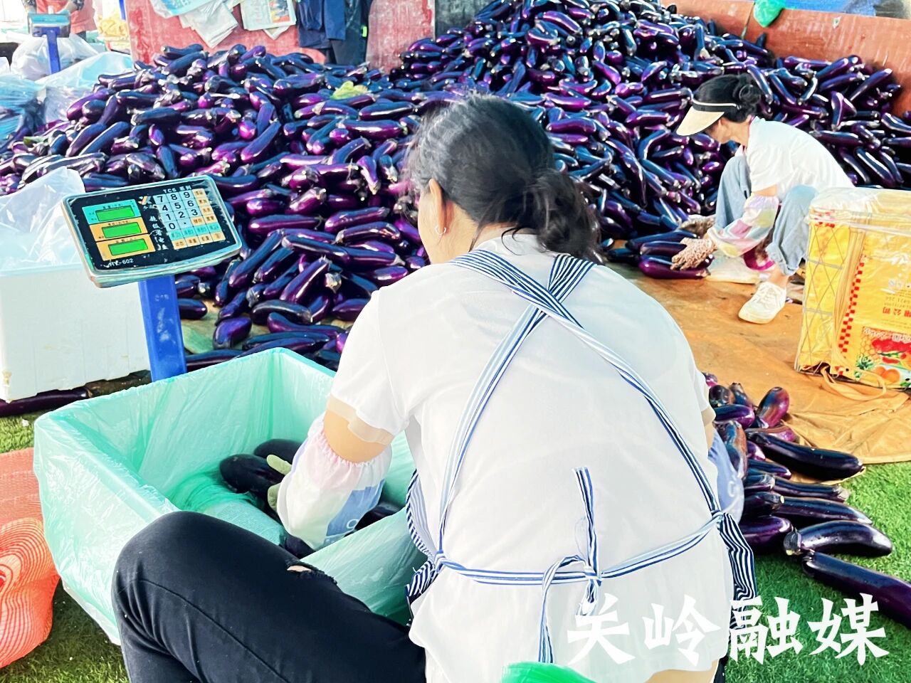 紫茄垂枝藏翠叶,丰收图景入画来。近日,上关镇宜所村35亩茄子进入盛产期,沉甸甸的紫茄挂满藤蔓,村民们穿梭田间采收、打包,一派忙碌又喜悦的丰收景象。