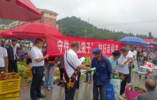 二是政银联手扩大宣传,有效提升活动覆盖面。为加大对乡镇群体、老年群体的防非打非宣传力度,组织辖内银行保险机构,联合县防非处非工作专班成员单位以“守住钱袋子·护好幸福家”为主题在坡贡镇开展防范非法金融活动宣传;利用乡镇赶集人流集中优势,联合断桥镇政府、司法所、农商行等单位在断桥镇开展防范非法金融活动宣传。