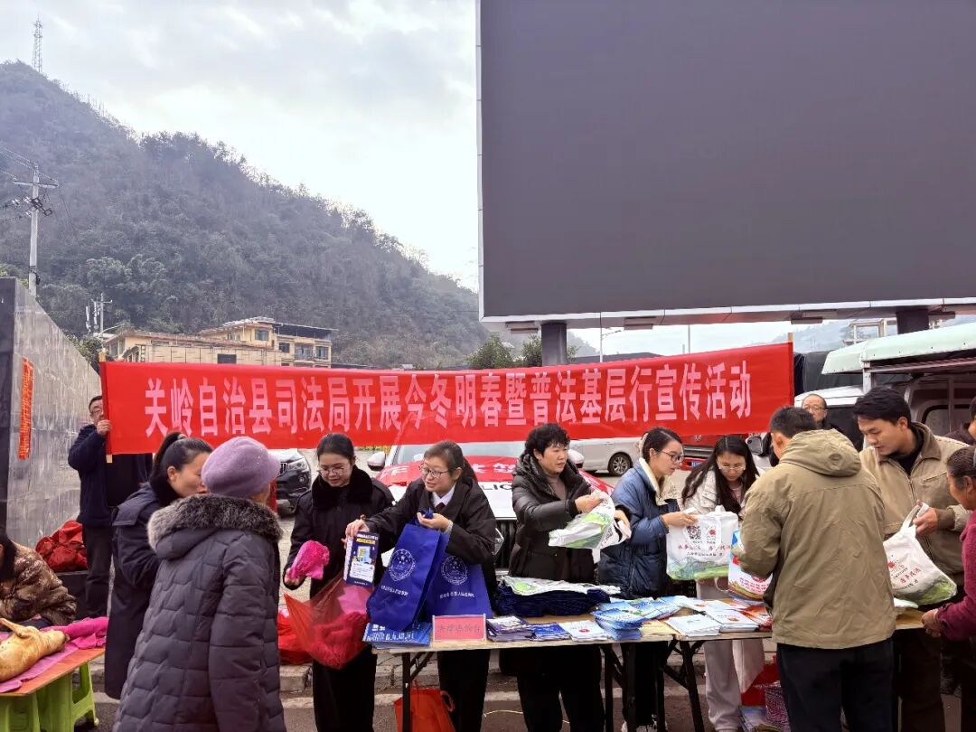 近日,关岭自治县司法局依托乡镇赶集日人流集中的优势,组织普法队伍深入乡镇集市开展“今冬明春暨普法基层行”宣传活动,将法律知识送到群众家门口。