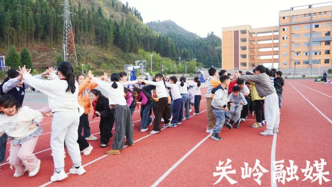 午后的关岭自治县实验学校运动场上热闹非凡。各班学生在老师的有序组织下,分别开展趣味体育游戏,勾肩搭脚、过河搭桥、贪吃蛇等趣味项目轮番开展。同学们热情高涨、团结协作,在轻松有趣的游戏中舒展筋骨、锻炼体能,欢声笑语回荡在校园各处,一张张稚嫩的脸庞上洋溢着灿烂的笑容,尽显少年朝气与活力。
